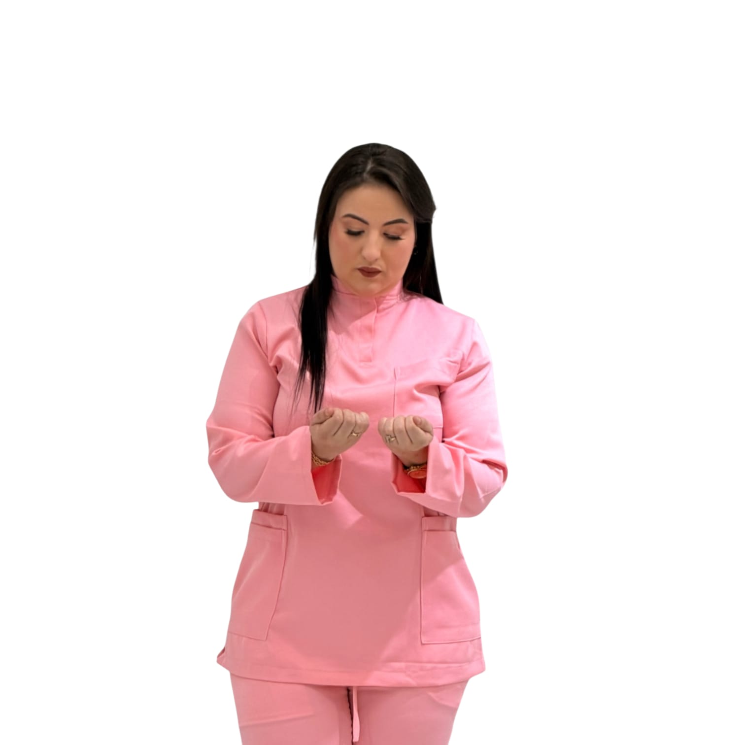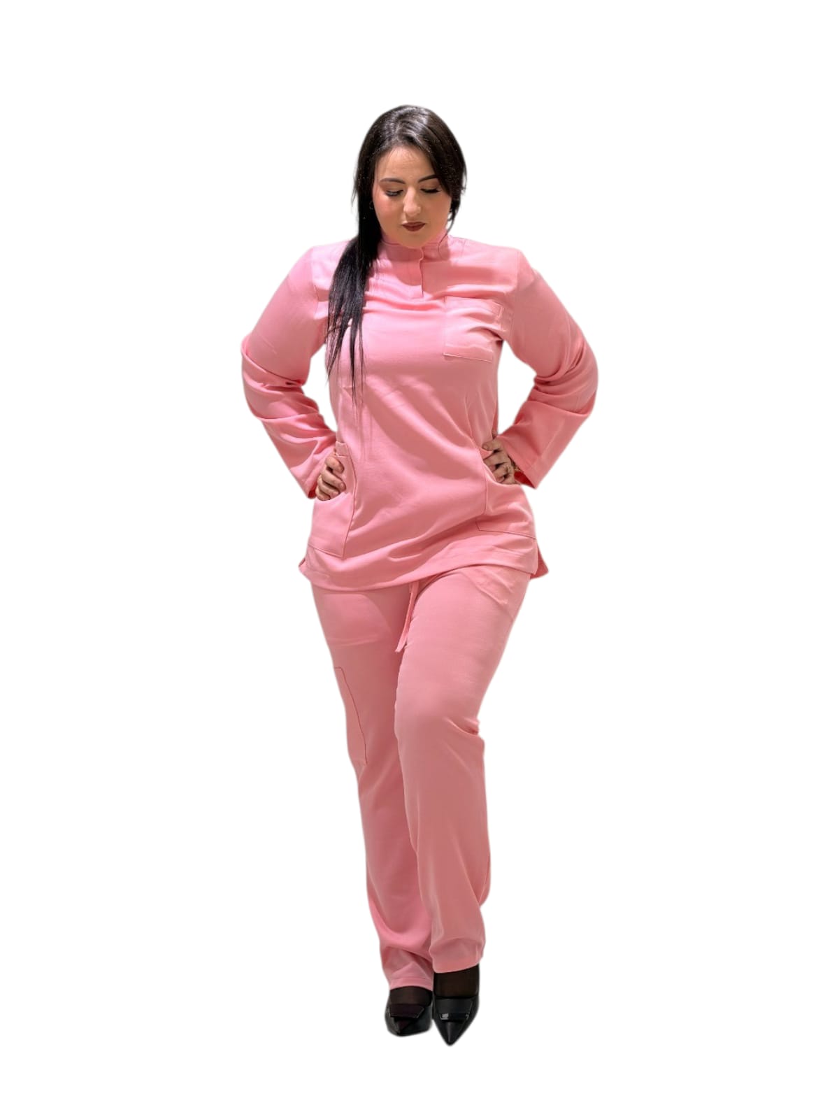 Ensemble professionnel pour femme en rose élégant, conçu pour allier douceur, confort et professionnalisme au quotidien. ✔️ Tissu confortable et agréable à porter ✔️ Coupe moderne et féminine ✔️ Manches longues avec finition soignée ✔️ Poches pratiques pour le matériel ✔️ Couleur rose raffinée pour un look professionnel et chaleureux Idéal pour : kinésithérapeutes, infirmières, centres médicaux, cliniques et esthéticiennes. Couleur : Rose Style : Médical – Professionnel – Élégant Saison : Toutes saisons ✨ Parfait pour travailler avec confort, confiance et une touche de féminité.